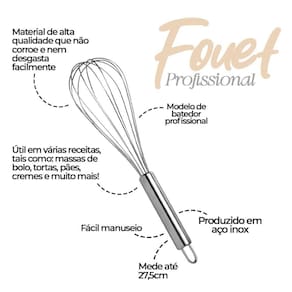 Não perca mais tempo e adquira já o seu fouet profissional de aço inox 27,5cm. Garanta um preparo perfeito de suas receitas com maior praticidade e eficiência. Seja para uso doméstico ou profissional, este batedor de ovos será um aliado indispensável na sua cozinha. Informações importantes sobre a compra