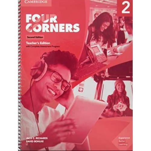 Four Corners 2 Tb With Complete Assessment Program - 2 Ed An integrated four-skills, American English course for adults and young adults. Four Corners Second Edition Level 2 CEFR A2 combines effective, communicative methodology with a practical, can-do approach. Clear learning outcomes and can-do statements for every lesson, linked to the Common European Framework of Reference CEFR , help teachers and their students measure the progress being made. This Teachers Edition includes complete teaching instructions, optional activities, photocopiable video activity sheets, video teaching notes, audio and video scripts, language summaries for each unit, CEFR correlations, and the Student Book and Workbook answer keys. It also provides a full assessment program with oral and written quizzes, and end of unit tests. Código de Barras - 9781108652285 Peso - 0.400 Kg Número de Páginas - 411 Ano de edição - 2018 Autor - Richards, Jack C. Editora - Cambridge Audio Visual & Book Teacher Assunto - Ensino De Línguas Formato - Encadernado Origem - Idioma - Inglês Americano Edição - 1 Dimensões - 23 X 27.5