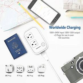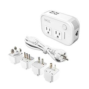 O Conversor de Tensão agora pode ser internacionalMente converte 220/240V a 110/120V para que você possa usar eletrônicos americanos na Europa, Ásia, Camboja, Austrália, Nova Zelândia, Reino Unido, Irlanda, Malta, Malásia, Cingapura e outros países 220V / 240V Quatro adaptadores estão incluídos: Tipo A, Tipo C, Tipo I e Tipo G Tipo A s principalmente nos EUA, Canadá, México & Japão Tipo C s principalmente na Croácia Dinamarca Finlândia França Geórgia Alemanha Grécia Hungria Islândia Holanda Noruega Polônia Portugal Itália e a maior parte da Europa Tipo I principalmente na Austrália, Nova Zelândia, China & Argentina Tipo G principalmente no Reino Unido, Irlanda, Malta, Malásia & Cingapura 200 watts conversor de energia com dois plugues padrão dos EUA e quatro 5V / 2.4A (2.4A por porta max) capaz de carregar simultaneamente múltiplos para laptop, bomba de peito, máquina CPAP, escova de dentes elétrica, ventilador, nebulizador, console de jogo, kindle, TV, leitores de DVD, portáteis, luzes, e outros dispositivos eletrônicos. AVISO DE SEGURANÇA Potência máxima: 200w ; Ao carregar simultaneamente vários dispositivos, certifique-se de que a potência total seja inferior a 200 watts. Não use com secadores de cabelo, chapinhas e outros dispositivos de alta potência. ; Por favor, não use este conversor com aparelhos classificados em coltage 220V-240V AC. Este produto só é capaz de fornecer energia para produtos 100V-120VAC. ESPECIFICAÇÃO; Tensão de Entrada: 100-240V AC, 50/60Hz ; Saída AC: 100-120V/AC, 60Hz ; Saída USB: DC 5V/8.4A(Total) ; Potência nominal: AC+USB=200W ; Adaptadores de Viagem: UK/AU/US/IT plug ; Proteções: Sobre-corrente, Sobre temperatura, Curto-circuito de saída, proteção contra surtos O que você recebe; 1 x CONVERSOR DE Tensão de Energia FOVAL ; 1 x cabo da UE; 4 x Adaptador de Viagem