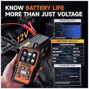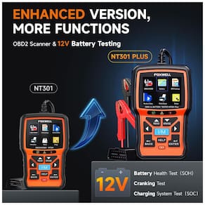 O FOXWELL NT301 Plus é a próxima geração do NT301, o primeiro scanner OBDII 2 em 1 da FOXWELL com testador de bateria de 12V. Oferece diagnóstico de Luz de Verificação do Motor, juntamente com verificações de saúde da bateria, do sistema de partida e de carregamento, permitindo que você verifique tanto problemas no motor como na bateria de uma vez. Possui uma tela maior de 2,8", ao contrário dos displays pequenos e difíceis de ler na maioria dos scanners baratos. Conecte o cabo do grampo da bateria ao cabo de diagnóstico antes de executar os testes de bateria. Além da voltagem da bateria, este testador de bateria veicular oferece uma visão completa da bateria, identificando rapidamente problemas com a bateria, sistema de partida e sistema de carregamento em segundos. Este testador de bateria automotivo fornece informações cruciais, medindo com precisão o Estado de Saúde (SOH) da bateria, condição de partida, voltagem de arranque, tempo de arranque, CCA (ampères de arranque a frio), SOC (Estado de Carga), voltagem de saída do sistema de carregamento, ajudando a evitar quebras na estrada e reparos caros. Cobrindo todos os módulos OBD2, este scanner de diagnóstico de veículos pode ler códigos de problemas de diagnóstico (DTCs), diagnosticar a Luz de Verificação do Motor (CEL), limpar códigos de erro e mostrar dados de sensores ao vivo com gráficos, como RPM do motor, temperatura do líquido de arrefecimento, ajuste de combustível e leituras de sensores. Também lê dados de quadro congelado, realiza testes de monitoramento a bordo, testes de componentes e recupera informações da ECU. Compatível com modelos U.S. de 1996, veículos europeus de 2001 e carros asiáticos de 2005 via porta OBDII de 16 pinos. Recupere dados de status de prontidão IM com uma tecla de prontidão IM com LED embutido para facilitar o teste de emissão. Indica rapidamente o status de emissão e mostra os resultados do teste em luzes LED Verde, Amarelo e Vermelho. E as descrições codificadas de DTC economizam tempo na localização de sensores ou componentes defeituosos e pesquisando soluções. Conheça as condições do carro antes da inspeção anual. Este scanner de carros exibe dados de sensores de veículos ao vivo em formato de texto e gráfico como RPM do motor, Gatilho DTC e mais. Ser capaz de visualizar entradas de sensores em tempo real ajuda você a se concentrar em quaisquer dados específicos de sintomas suspeitos ou específicos. Suporta reprodução de dados e impressão através de um computador, facilitando os reparos. Este testador de bateria é compatível com baterias AGM planas, AGM e GEL. Utilizando tecnologia avançada de condutividade, garante leituras precisas e estáveis através de suas conexões mecânicas robustas e terminais de fixação, minimizando a perda de dados. Com o Chip proprietário da FOXWELL, melhora a eficiência de processamento de dados, melhorando a precisão do teste em 20%. O scanner NT301 Plus suporta os principais protocolos OBDII, como ISO9141, KWP2000, J1850 VPW, J1850 PWM e CAN. Observe que não suporta protocolos não OBDII, como veículos anteriores a 1996 ou alguns modelos de veículos Fiat, ALFA, Lancia, Peugeot, Citroen, Ssangyong da Coréia do Sul, Lada, VAZ, UAZ, GAZ da Rússia. Alguns protocolos especiais podem exigir um cabo conector adicional, confirme antes de comprar.