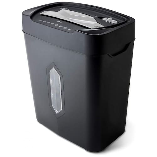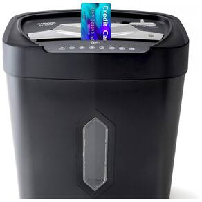 Corte transversal com capacidade para 12 folhas destrói cartões de crédito e pequenos clipes de papel Destrói papel e cartões de crédito em pedaços pequenos aproximadamente 4,76 x 39,69 milímetros, nível de segurança P 3 Tempo de execução contínua de 5 minutos sem parar reversão automática anti encravamento para eliminar encravamentos de papel Proteção contra sobrecarga e superaquecimento, interruptor de alimentação com 4 modos desligamento automático reverso avanço Cesto de lixo de 19,68 litros com luzes indicadoras LED para espera, superaquecimento.