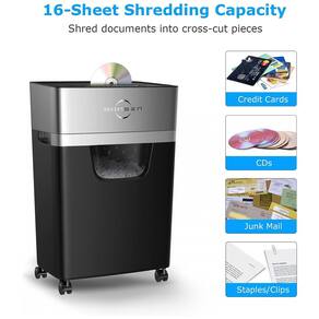 Capacidade de trituração de folhas 16 Este triturador de papel de corte transversal destrói 16 folhas por passagem em pequenas partículas de aproximadamente 3 x 2 centímetros, destrói CDs , correio eletrônico , cartões de crédito , grampos também. Alto nível de segurança P 4, evite efetivamente que suas informações confidenciais sejam vazadas.