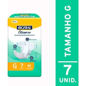 Fralda Descartável Bigfral Clássica - Extra Grande (7 Unidades) A Fralda Descartável Bigfral Clássica foi especialmente desenvolvida para proporcionar conforto e segurança em cada dia. Com tamanho Ext