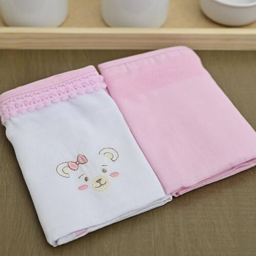 Características: - Contém 2 Unidades - Medidas Aproximadas: 68 cm x 70 cm - Acabamento: Viés nos 4 cantos - Tecido: Fralda Luxo 100% Algodão - Possui Pompons - Possui Bordado - Marca: Bublim