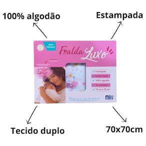 A linha luxo é versátil e ajuda as mamães no cuidado dos bebês. Podem ser usadas na hora de dormir, como protetor contra o vento e sol, base de trocador, para forrar qualquer superfície quando necessário, entre outros. Seu tamanho é excelente, pois possibilita inúmeras utilizações como: fraldinha para cochilar, de ombro, para proteger no bebê conforto ou carrinho, Possui estampas lindas, delicadas e alegres. Entre outras finalidades incríveis. É a nossa linha de maior qualidade, confeccionada com tecido duplo 100% de fibra de algodão proporciona conforto e maciez para a pele sensível do bebê. Tecido duplo e muito mais macia. As Fralda de Pano é mais do que essencial no enxoval do bebê. Esse kit com 5 unidades de fralda com estampas, é nota 10 no que diz respeito a relação custo X benefício. Nossa caixa de fraldas luxo é coringa para ser Utilizado em muitas funções, pois é grande, com tecido duplo e possui estampas lindas Principais Características: Quantidade: 5 Fralda de Pano Luxo Estampada Medidas: 70cm x 70cm Tamanho ideal Tecido Duplo Extra absorvente ou seja, existe duas camadas para maior durabilidade Extra Absorvente Composição: 100% Algodão macio e confortável Cor: Rosa, Azul ou Neutra Item super VERSÁTIL. para enrolar o bebê em forma de charutinho para acalmá-lo. para forrar superfícies em passeios. para cobrir o bebê conforto e/ou carrinho na hora da soneca em passeios. Sugestões de uso: Proteger sua roupa durante a amamentação Secar o bebê Limpar o bebê durante a amamentação Segurar o bebê durante o sono Cobrir o bebê-conforto ou o carrinho Para usar sobre o trocador E o que mais você precisar Dica: é um ótimo presente Estampa enviada para MENINA. Marca: Não Informado