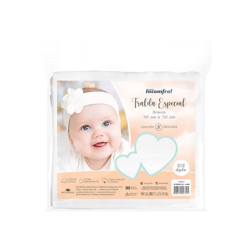 Fralda de Pano Especial 5 unidade Fraldas Incomfral - Branco