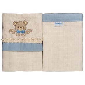 Características: - Contém 2 Unidades - Medidas Aproximadas: 68 cm x 70 cm - Tecido: 100% Algodão - Com Bainha e Bordada - Marca: Baby Joy
