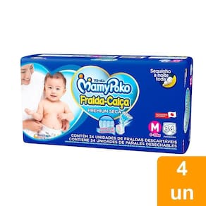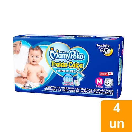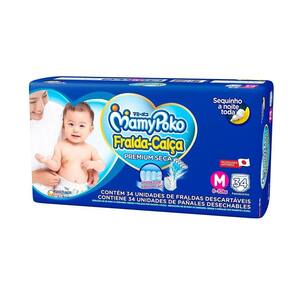 Características Principais do Produto MamyPoko Fralda-Calça é fácil de vestir e ficou ainda mais respirável. Os exclusivos Furinhos Arejados na cintura* liberam a unidade para fora. Além disso, tem Caminhos de Ar que melhoram a circulação de ar dentro da fralda e absorve até 5 copos de líquido. Mantem o seu bebê sempre sequinho e confortável. *Quantidade e localização dos Furinhos Arejados reduzida no tamanho P.* Composição: Fralda Calça: Não tecido de fibras de polipropileno, não tecido de fibras de poliéster Polpa, polímero superabsorvente Filme de polietileno, poliuretano, elastômero de estireno, polipropileno e adesivos. Fornecedor: Mamy Poko