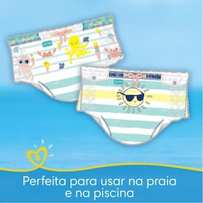 A Fralda Descart?vel Pampers Splashers Piscina ? ideal para utiliza??o na piscina e no mar. Possui cintura el?stica flex?vel em toda circunfer?ncia, barreiras duplas anti vazamento. Al?m disso, sua exclusiva tecnologia n?o deixa o material inchar e nem vazar gra?as a sua camada interna permite a absor??o de xixi e coc? de forma efetiva. S?o super f?ceis de colocar, com lindas estampas unissex.