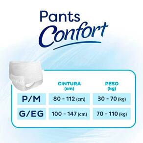 Informações Adicionais do Produto: Roupa íntima descartável e unissex para usuário com mobilidade e perdas de urina moderada/severa. Produto de fácil uso, discrição, segurança e rápida absorção. O usuário seco e confortável, reduz significativamente o risco de irritações ou infecções cutâneas. Ajuste perfeito ao corpo.