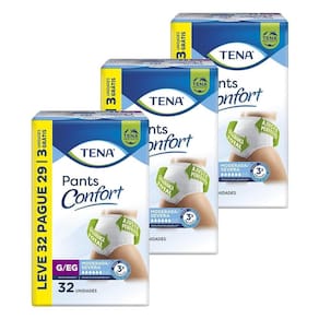 Características Adicionais: Uma solução inovadora e eficaz para aqueles que enfrentam a incontinência urinária moderada a severa. Esta roupa íntima oferece duplos canais de absorção, proporcionando uma absorção rápida e eficiente da urina, além de uma série de benefícios que a tornam a escolha ideal para quem busca conforto, segurança e discrição. Segura, confortável e discreta, TENA Pants Confort é especialmente indicada para pessoas ativas. Unissex e possui uma cintura elástica que oferece o melhor ajuste. Contando com uma inovação que neutraliza o risco de odores indesejáveis, garantindo uma experiência discreta em qualquer situação. 3x mais proteção. Ajuste Perfeito. Conforto para o dia a dia.