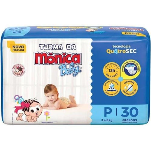 Proteção suave e delicada para seu bebê A Fralda Turma da Mônica Jumbo deixa o seu bebê protegido por até 12 horas e você tranquila para brincar com ele sem preocupações. Possui tecnologia Quatro Sec. Com distribuição rápida e uniforme do xixi e barreiras antivazamento. Além disso, contém novos desenhos coloridos e suave cintura elástica, que esticam e se ajustam onde seu bebê mais precisa.