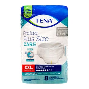 TENA Plus Size Care é uma Fralda Descartável e unissex de rápida absorção, que proporciona ao usuário ativo facilidade e praticidade de uso, discrição e segurança. Produto com elásticos em volta da cintura que garante um ajuste perfeito ao corpo. Além da proteção da pele que ajuda na prevenção de irritações, permitindo que a mesma esteja sempre saudável e seca. É indicado para perdas de urina severa. Um produto hipoalergênico (desenvolvido para minimizar riscos de alergias) com tecido respirável e macio. Proteção e cuidado para a pele todos os dias.