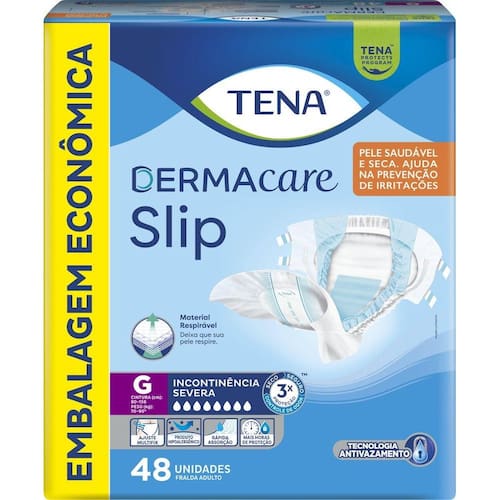 Fralda TENA DERMACARE para usuários com pouca ou nenhuma mobilidade (acamados). Possui tecnologia antivazamento, com barreiras protetoras, elásticos nas costas e controle antiodor. Indicada?para incontinência urinária e fecal. Possui Sistema MultiFix, fitas aderentes (duas de cada lado), para melhor fixação das fitas, garantindo uma adaptação segura e confortável ao corpo. Com tecido macio e respirável que permite a respiração da pele, mantendo-a sempre seca e saudável, e ajuda a prevenir irritações. Com dupla camada de polpa anatômica, um núcleo de alta absorção e transfer layer, rapidamente retém a urina e a mantem longe do corpo. Um produto hipoalergênico. Proteção e cuidado para a pele todos os dias! Uso diurno e noturno.