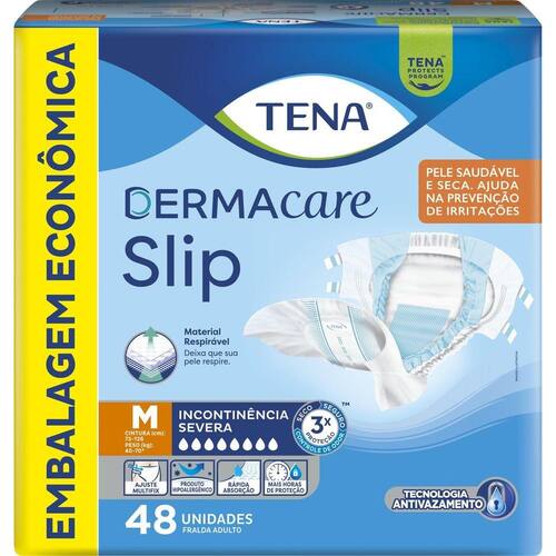 Fralda TENA DERMACARE para usuários com pouca ou nenhuma mobilidade (acamados). Possui tecnologia antivazamento, com barreiras protetoras, elásticos nas costas e controle antiodor. Indicada?para incontinência urinária e fecal. Possui Sistema MultiFix, fitas aderentes (duas de cada lado), para melhor fixação das fitas, garantindo uma adaptação segura e confortável ao corpo. Com tecido macio e respirável que permite a respiração da pele, mantendo-a sempre seca e saudável, e ajuda a prevenir irritações. Com dupla camada de polpa anatômica, um núcleo de alta absorção e transfer layer, rapidamente retém a urina e a mantem longe do corpo. Um produto hipoalergênico. Proteção e cuidado para a pele todos os dias! Uso diurno e noturno.