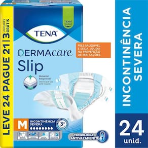 - Indicação: Incontinência urinária e fecal moderada a intensa - Sistema MultiFix: Fitas adesivas duplas para melhor fixação e conforto - Barreiras antivazamento e elásticos nas costas e pernas para ajuste perfeito - Núcleo de alta absorção com dupla camada de polpa anatômica - Indicador de umidade: facilita o momento da troca - Produto hipoalergênico e atóxico, testado dermatologicamente - Ideal para quem busca uma fralda geriátrica de alta performance, a TENA Dermacare é sinônimo de confiança, conforto e cuidado com a pele. Uma escolha segura para o dia a dia de quem convive com a incontinência.