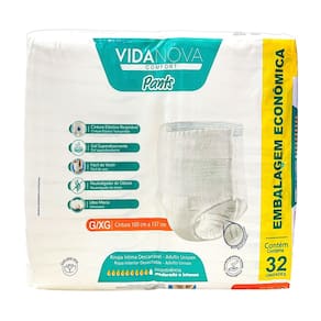 A Roupa Intima Vida Nova Pants Comfort é a solução ideal para quem busca conforto e segurança em momentos de incontinência moderada a severa. Com 32 unidades por embalagem, este modelo foi desenvolvido para proporcionar máxima absorção, garantindo que você se sinta seco e protegido ao longo do dia.
