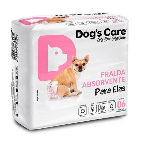 Fralda Higiênica G Para Fêmeas Dogs Care C/6 Unidades - Indicada para cães; - Para cães fêmeas de 13 a 20Kg; - Ideal para os períodos do cio; - Fralda super absorvente; - Contém 6 unidades. A Fralda Higiênica Para Fêmeas Dog´s Care é ideal para manter a higiene e conforto das cachorrinhas fêmeas. A fralda pode ser utilizada quando não quer que as cachorrinhas façam xixi em locais indevidos, evitar constrangimentos em viagens e passeios, casos de demarcação de território, quando estiver no cio, casos de incontinência urinária, quando ela já estiver bem velhinha, depois de algum procedimento cirúrgico e para um passeio tranquilo e sem sujeiras. A fralda Higiênica Para Fêmeas Dog´s Care tem a mesma tecnologia das fraldas para bebê, facilitando de modo geral, trazendo conforto e bem estar. Possui fitas ajustáveis, tem orifício para garantir o conforto e permitir a saída de fezes, evita a proliferação de fungos e bactérias, tem um gel super absorvente garantindo até 6 horas de absorção, são fraldas anatômicas, não assam e são hipoalergênicas. Medidas aproximadas Tamanho PP: 1 a 3 kg Cintura de até 33cm Tamanho P: 3 a 6Kg Cintura de até 40cm Tamanho M: 6 a 13Kg Cintura de até 49cm Tamanho G: 13 a 20Kg Cintura de até 58cm