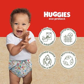 Fralda Infantil Reutilizável Huggies Eco Protect Tamanho Único 4 Unidades A linha Huggies Eco Protect foi desenvolvida para oferecer proteção e cuidado suave para a pele do seu bebê. Nossa fralda e ab