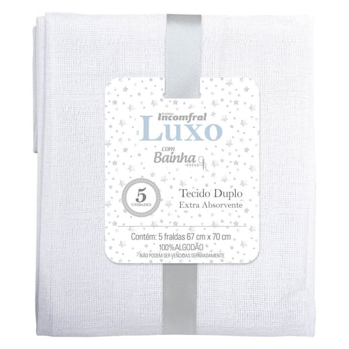 Características: - Contém 5 Unidades - Medidas Aproximadas: 67 cm x 70 cm - Tecido: 100% Algodão - Acabamento em Bainha - Marca: Fraldas Incomfral
