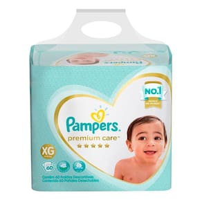 Fralda Pampers Premium Care Tamanho XG Pacote Hiper 60 Fraldas Descartáveis é na Drogaria Araujo! Cobertura ultra suave, protege a pele do seu bebê. Laterais suaves e flexíveis. Confira!
