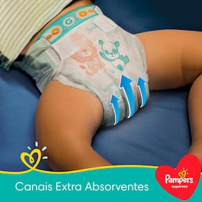 Pampers Supersec mantém o seu bebê mais seco do que outras fraldas, por até uma noite inteira*, porque somente ela conta com canais extra-absorventes exclusivos, que distribuem o xixi de forma uniforme, impedindo que ele entre em contato com a pele do seu pequeno.