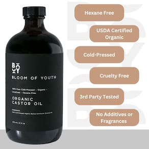 Bloom of Youth O frasco âmbar de 473 ml de óleo de rícino puro é um poderoso agente de cura que tem sido apreciado por séculos, que remonta a 4000 aC. Conhecido por sua incrível versatilidade, este óleo orgânico rico em minerais tem vários usos, desde promover o crescimento natural do cabelo até nutrir a pele e melhorar as sobrancelhas e cílios. O óleo de rícino é rico em antioxidantes, o que o torna um complemento perfeito para sua rotina de cuidados com a pele como um hidratante ou como parte de seus óleos essenciais para o regime de pele. Nosso óleo de rícino é um óleo veicular altamente eficaz para a mistura de óleos essenciais, fornecendo uma base ideal para seus óleos favoritos. Seja utilizado em um envoltório de óleo de rícino ou como um pacote de óleo de rícino, ajuda a apoiar a saúde das articulações, aliviar a inflamação e desintoxicar o corpo. Os ricos ácidos graxos do óleo nutrem profundamente, hidratam e promovem a saúde geral das unhas, pele e cabelo. Como um benefício extra, o óleo de rícino Bloom of Youth é perfeito para criar seu próprio soro de cílios de óleo de rícino para suportar cílios mais longos e mais espessos, ou como um óleo natural de crescimento capilar para ajudar a crescer cabelos mais cheios e fortes. Se você usá-lo como um óleo corporal ou aplicá-lo diretamente no seu rosto, ele oferece hidratação profunda e cura, restaurando um brilho jovem. Este óleo puro e orgânico pode ser utilizado diariamente para limpar, hidratar e revitalizar sua pele, deixando-a macia e nutrida. Garantimos que cada gota do nosso óleo de rícino seja obtida e engarrafada com cuidado, para que você possa desfrutar de uma experiência natural e sem produtos químicos. Perfeito para mulheres que buscam uma solução multiuso para beleza e bem-estar, o óleo de rícino Bloom of Youth é uma adição essencial à sua loja de produtos essenciais para a pele. Aplique de forma consistente e deixe este óleo antigo e extra potente ajudá-lo a melhorar sua beleza natural. - Palma Cristi: a infinidade de usos e propriedades curativas é por isso que o óleo de rícino é chamado de Palma Christi, ou "Palma de Cristo". Nossa garrafa de 473 ml não contém nada além de óleo de rícino 100% puro e prensado a frio, garantindo potência máxima e preservando todos os seus nutrientes naturais para um cuidado ideal com a pele, cabelo e unhas – exatamente como DEUS DEUS PRETENDIDO. - Feito nos EUA: nosso óleo de rícino premium vem em uma garrafa de vidro âmbar mais escura. Nossa garrafa é feita nos EUA para garantir a mais alta qualidade. A cor âmbar escura protege os delicados nutrientes do óleo da luz, preservando sua eficácia e frescor ao longo do tempo. - Bomba incluída: nosso óleo de rícino vem com uma bomba conveniente para uma aplicação fácil e sem bagunça. Se você estiver usando para cuidados com a pele, cuidados com os cabelos ou pacotes de bem-estar, a bomba garante a quantidade perfeita sempre. Desfrute de uma experiência sem complicações enquanto nutre sua pele e cabelo com óleo de rícino 100% puro e natural. - Jovem eu: o óleo de rícino é rico em antioxidantes, proporcionando hidratação profunda e nutrição para a pele, cabelo, unhas, sobrancelhas e cílios. Embalado com ácidos graxos essenciais e vitaminas, ajuda a restaurar a umidade e promover um crescimento saudável. Além disso, suas propriedades de limpeza ajudam a eliminar toxinas prejudiciais do corpo, deixando você se sentindo revigorado e revitalizado. - Ecológico: certificado pela USDA orgânico, sem hexano, prensado a frio, livre de crueldade, vegano, testado por terceiros e sem aditivos ou fragrâncias. - Nossa promessa: na Bloom of Youth, acreditamos no poder da beleza natural. Prometemos oferecer um produto que não apenas melhora sua beleza natural, mas também apoia seu bem-estar, livre de produtos químicos nocivos. Além disso, com nossa garantia de devolução do dinheiro em 30 dias, você pode experimentá-lo sem riscos!