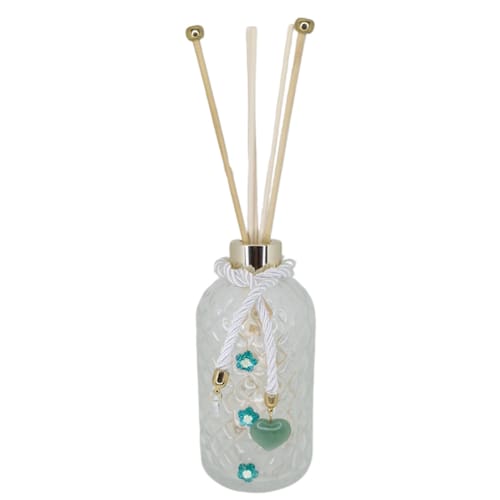 O Frasco Difusor em Vidro Decorado Artesanal é composto por uma pedra natural tamanho médio além dos pingentes, as peças são de vidro e decoradas de forma artesanal proporcionando requinte e delicadeza em peças de beleza única.