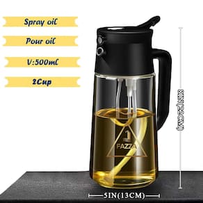 O spray de óleo Fazza e o frasco de despejo são os melhores companheiros de cozinha projetados para facilitar cozinhar, assar e fazer churrasco. Este dispensador de óleo versátil oferece um design de dupla função, permitindo que você alterne perfeitamente entre pulverizar e despejar seus óleos favoritos. Seja temperando uma salada fresca, grelhando um bife suculento ou adicionando a quantidade perfeita de óleo à sua fritadeira, este pulverizador é ideal para todas as suas aventuras culinárias. Feito de materiais excepcionais para cozinha, o frasco dispensador de óleo Fazza garante que seus óleos permaneçam seguros e não contaminados. O corpo transparente da garrafa permite que você monitore os níveis de óleo, para que você nunca seja pego de surpresa por uma garrafa vazia no meio da preparação da refeição. O design elegante, combinado com o esquema clássico de cores preto e azul, a torna não apenas uma ferramenta funcional, mas também uma adição elegante a qualquer decoração de cozinha. Com uma capacidade generosa de 500 ml, este dispensador de azeite de oliva em spray reduz a frequência de recargas, economizando tempo e aborrecimentos. A abertura ampla da boca é projetada para facilitar o reabastecimento, evitando derramamentos e respingos que podem sujar sua cozinha. Após o uso, a limpeza é fácil – a garrafa pode ser facilmente lavada à mão ou na máquina de lavar louça, tornando-a uma escolha reutilizável. Seja você um cozinheiro amador ou um chef experiente, a garrafa de pulverizador de óleo Fazza é um dispositivo essencial de cozinha que revolucionará a maneira como você cozinha. Perfeita para o uso diário, é a ferramenta ideal para quem gosta de criar refeições deliciosas. Faça do frasco pulverizador de óleo Fazza um item básico em sua cozinha e aproveite a conveniência e precisão que ela traz a cada prato. - Função dupla e uso versátil - o pulverizador de óleo de cozinha oferece funções de pulverização e despejo, ideal para cozinhar, assar e churrasco. Esta ferramenta multiuso é perfeita para todas as suas necessidades de cozinha, incluindo uso de fritadeira a ar. - Qualidade excepcional de vidro - Feito de vidro grosso, inquebrável e de grau de cozinha. O corpo transparente do dispensador de óleo dois em um permite que você monitore os níveis de óleo facilmente, garantindo o uso seguro e conveniente em cada preparação de refeição. - Fácil de reabastecer e limpar - com uma capacidade de 500 ml e abertura ampla da boca, é fácil recarregar seu dispensador de óleo em spray para cozinha. Projetada para conveniência, a garrafa é fácil de limpar à mão ou na lava-louças, tornando-a um item essencial de cozinha reutilizável - Controle preciso de óleo - Projetado para ajudar você a gerenciar a ingestão de óleo, cada spray deste pulverizador de óleo e dispensador para cozinhar dispensa a quantidade perfeita de óleo, facilitando a medição. Ideal para quem se preocupa com a saúde. - Design ergonômico e limpo - Com um bocal proeminente e alça confortável, o frasco de spray de azeite garante uma névoa fina sem bagunça. Desfrute de uma experiência de cozimento fácil onde suas mãos permanecem limpas e suas refeições perfeitamente preparadas.
