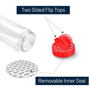 - Fácil de usar: as tampas dos nossos potes de tempero são tampas de dois lados para agitar ou despejar especiarias. Há uma vedação interna removível sob a tampa do pote para manter o produto fresco e delicioso.