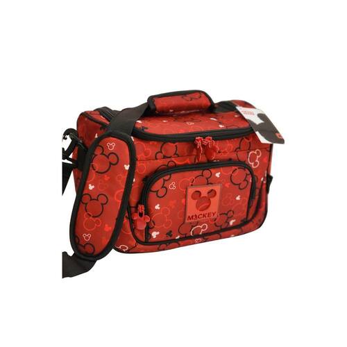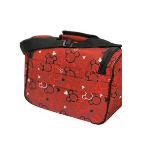 A Frasqueira feminina é uma ótima opção para carregar seus itens de cuidado pessoal em uma viagem ou organizar suas maquiagens até mesmo no dia a dia. É uma frasqueira grande com dois bolsos internos nas laterais e elástico para prender seus pincéis ou escovas e um bolso externo frontal. A Frasqueira organizador de viagem conta alça para prender no carrinho da mala e alça ajustável para ombro, puxadores personalizados do Mickey com espaçamento para cadeado. Material: Poliéster Possui alça transversal regulável que pode ser removida. Medidas: 29cm de altura, 28 cm de largura e 21cm de profundidade. Fechamento em zíper. Produto Oficial: Disney