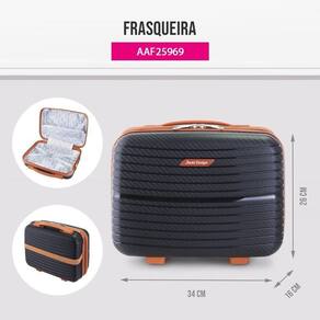 Feita em polipropileno resistente, a frasqueira garante proteção e leveza, ideal para quem busca funcionalidade sem abrir mão do estilo. O amplo espaço interno conta com divisória central, elásticos organizadores e bolsos internos, mantendo tudo no lugar durante o transporte.