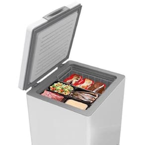 Freezer 100l Midea Horizontal 01 Tampa - Cfa10b1 O Freezer Horizontal Midea 100L é perfeito para quem quer preservar alimentos resfriados, conservados ou congelados de forma rápida. Possui cesto para melhor organização de seus alimentos e graças a versatilidade de suas funções, pode operar tanto como Freezer entre as temperaturas -24C e -18C, quanto como conservador e refrigerador entre as temperaturas 10C e -18C. Possui Selo Procel e classificação Energética A+ para modelo 127V, A para modelo 220V e 10 anos de garantia no compressor.INFORMAÇÕES GERAISCapacidade: 100 LFunções: Resfriar, Conservar e FreezerRange de temperatura: 100 , -12-24CPainel: MecânicoMaterial interno: AlumínioMaterial externo: Aço galvanizadoNúmero de portas: 1Cesto de armazenagem: SimPuxador: Sim (fixo)Dreno: FrontalRodízio: 2 rodízios somente na base do compressorSuporte do cabo de alimentação: SimLuz Indicadora de Funcionamento: SimFluido Refrigerante: R600aDADOS TÉCNICOSConsumo: 110V: 22 kWh/mês Potência: 110V: 110W / 220V: 100WFrequência: 60 HzPotência sonora dB (A): 110V: 42 / 220V: 40Selo Procel e classificação Energética A+ para modelo 127V e A para modelo 220VTemperatura de Operação do Freezer: -18C (mínimo) / -24C (máximo)Temperatura de Operação do Refrigerador: 0C (mínimo) / 10C (máximo)Temperatura de Operação do Conservador: -12C (mínimo) / -18C (máximo)DIMENSÕESAltura: 85 cmLargura: 54,5 cmProfundidade: 49,5 cmPeso: 21 kg DIMENSÕES DA EMBALAGEMAltura: 88,8 cmLargura: 57,8 cmProfundidade: 52 cmPeso: 22 kgCor: BRANCO - Voltagem: 110 VOLTS.