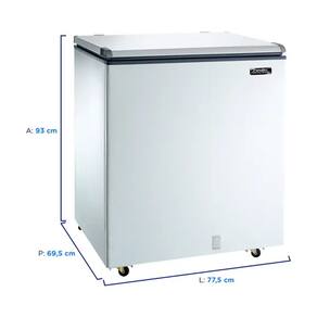 Características: Marca: Esmaltec Modelo: ECH250 Capacidade total: 230 litros Capacidade líquida: 214 litros Tipo de degelo: Manual Tipo de freezer: Horizontal Gás Refrigerante: R134a Modos: Conservador Painel: Externo Quantidade de portas: 1 porta Material interno: Aço galvanizado Dreno: Sim Pés com rodízios: Sim