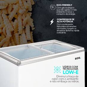 Desfrute da potência inigualável proporcionada pelo compressor de alta potência com condensador helicoidal e dimensões otimizadas. Este Freezer Expositor EOS congela seus alimentos de maneira rápida e eficiente, garantindo que você tenha sempre ingredientes frescos à mão para suas receitas favoritas. Além disso, sua tecnologia eco-friendly utiliza um gás refrigerante ambientalmente amigável, destacando o compromisso deste aparelho em reduzir o impacto no meio ambiente e, ao mesmo tempo, economizar em sua conta de energia.
