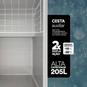 CESTA AUXILIAR: Para você colocar alimentos ou bebidas menores sem perder espaço. DUPLA AÇÃO: Freezer e Refrigerador -18°C até -22°C ECO-FRIENDLY:Com gás ecológico que não agride o meio ambiente e reduz o consumo de energia. VIDROS COM TECNOLOGIA LOW-E:Diminui a troca de calor com o meio ambiente e não embaça os vidros. COMPRESSOR DE ALTA POTÊNCIA:Com condensador helicoidal e dimensões otimizadas, congela os alimentos de forma rápida e eficiente. CONTROLADOR DE TEMPERATURA:Oferece mais autonomia para você controlar a temperatura adequada aos seus alimentos.