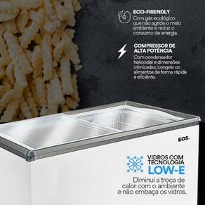 O Freezer Conservador Horizontal EOS Eco Gelo 247L EEH300XX é a solução definitiva para quem busca aliar visibilidade estratégica e eficiência térmica em um único equipamento. Equipado com a Dupla Ação, ele transita entre freezer e refrigerador com extrema versatilidade, enquanto suas tampas de vidro Low-E garantem que os produtos estejam sempre visíveis e sem embaçamento, estimulando o consumo imediato. Além de ser uma escolha sustentável e econômica graças ao gás ecológico R600a, o modelo oferece praticidade máxima com sua cesta auxiliar de organização, rodízios para fácil movimentação e um gabinete interno em alumínio de alta durabilidade, tornando-se o investimento ideal para modernizar qualquer ponto de venda.