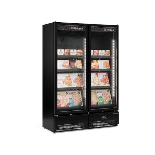 Porta de vidro duplo temperado: Com sistema de aquecimento e fechamento automático, evita a condensação e melhora a conservação;