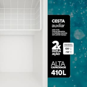 450 litros brutos (410 litros líquidos) para estocar grande volume de alimentos e bebidas com organização e praticidade.