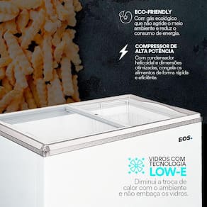 Freezer e Conservador Expositor Horizontal EOS 450 Litros Eco Gelo Dupla Ação com Tampa de Vidro EEH500XX 220V