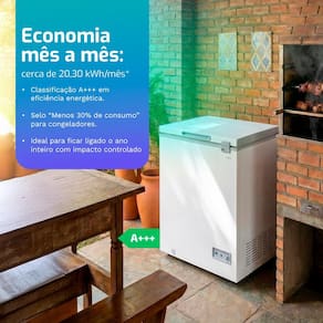 Com consumo aproximado de 20,30 kWh/mês, ele foi feito para ficar ligado o ano inteiro com tranquilidade, ajudando você a organizar o estoque sem apertar a conta de luz. E o melhor: além de freezer, ele também pode ser utilizado como refrigerador, com ajuste simples no controle mecânico, para se adaptar ao que você precisa em cada momento.