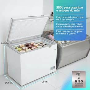 Com 300 litros, cabe o reforço que sempre faltou: carnes fracionadas, caixas de hambúrguer, polpas, pacotes de vegetais, marmitas congeladas, sorvetes, gelo para eventos e promoções. É espaço suficiente para aliviar totalmente o congelador da geladeira ou para complementar o estoque de um pequeno comércio.