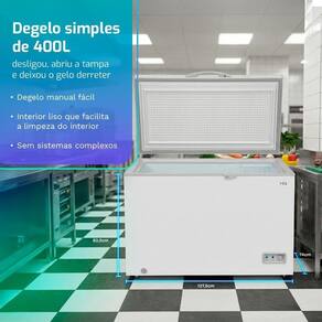 Freezer e Conservador Horizontal HQ 400 Litros Branco HQ-400CFX Alta capacidade para grandes estoques com baixo consumo. Se o seu negócio ou a sua casa precisa de estoque congelado em grande escala, o Freezer Horizontal HQ 400L HQ-400CFX foi feito para esse cenário. São 400 litros de capacidade em um gabinete robusto, pronto para receber grandes volumes de carnes, caixas de congelados, marmitas, sorvetes, gelo e tudo o que não cabe mais na geladeira ou no freezer menor que você já tem. Com consumo aproximado de 41,12 kWh/mês, o HQ-400CFX foi pensado para ficar ligado o ano inteiro, ajudando a manter a conta de luz sob controle mesmo com o freezer sempre cheio. Para quem depende de produtos congelados todos os dias, isso significa mais espaço de sobra sem transformar o consumo em problema. O interior liso, o cesto aramado e a base com rodízios + pés ajustáveis transformam a rotina: é fácil organizar, encontrar produtos, limpar o gabinete e movimentar o equipamento quando necessário. Tudo isso com o reforço da trava externa na tampa e do puxador robusto, ideal para ambientes de alto giro. Para famílias grandes, pequenos comércios e empreendedores que precisam de um freezer grande, econômico e confiável, o HQ-400CFX equilibra capacidade, consumo e praticidade de uso contínuo em um único equipamento. Por que isso importa no dia a dia Economia que se repete todo mêsO HQ-400CFX consome cerca de 41,12 kWh/mês na prática, isso significa um custo fixo mais baixo por litro de armazenamento, algo essencial para quem não pode desligar o freezer nunca. 400 Litros para estocar muito maisSão 400 litros pensados para grande volume, cabe o reforço completo de carnes fracionadas, caixas de hambúrguer, pacotes de vegetais, polpas, sobremesas congeladas, gelo para eventos e promoções sem apertar tudo no limite. Ideal para aliviar totalmente o congelador da geladeira ou substituir freezers menores. Organização fácil com cesto e bojo amploO bojo interno amplo recebe as caixas O cesto aramado deixa à mão tudo o que entra e sai o tempo todo: itens de giro rápido, marmitas do dia, porções menores. maiores, sacos e bandejas, permitindo criar uma lógica de organização clara entre estoque de fundo e produtos de uso imediato. Degelo manual simples e sem segredoO sistema de degelo é manual e direto, desligar, abrir a tampa, aguardar o gelo derreter e secar o interior com pano macio. Sem eletrônica escondida nem peças complexas, qualquer pessoa da casa ou da equipe consegue entender e executar o processo com segurança. Fácil de instalar, movimentar e nivelarOs 2 rodízios ajudam a mover o freezer na hora de limpar ou reorganizar o ambiente. Os 2 pés ajustáveis facilitam o nivelamento, evitando trepidações e garantindo melhor fechamento da tampa e desempenho do compressor algo especialmente importante em pisos irregulares. Segurança, conforto e durabilidadeA trava externa na tampa aumenta a segurança em ambientes com circulação de pessoas. O puxador externo robusto aguenta o uso intenso do dia a dia. O gás R600a, o agente de expansão ciclopentano e o controle mecânico formam um conjunto confiável, eficiente e simples de manter. Cenários de uso doméstico e comercial de pequeno porteFamílias grandes que fazem compra do mês e precisam de muito espaço extra para carnes, congelados e marmitas.Pequenos mercados, mercearias e empórios que querem reforçar o estoque de congelados sem investir em câmaras frias.Restaurantes, bares, lanchonetes, pizzarias e hamburguerias com alto giro de produtos congelados.Negócios de delivery de marmitas, refeições prontas e sobremesas congeladas que dependem de estoque constante.Casas de praia, sítios e chácaras que recebem muitas pessoas em finais de semana e feriados.Refeitórios corporativos, cozinhas industriais de menor porte e cozinhas de apoio que precisam de um equipamento de suporte confiável. Itens na embalagem1 Freezer Horizontal HQ 400L HQ-400CFX1 cesto aramado.1 Manual de instruções.1 Certificado de Garantia. Especificações TécnicasMarca: HQModelo: HQ-400CFXCor: BrancoVoltagem: 12V ou 220V (Não é Bivolt)Capacidade: 400 LitrosTipo: Freezer HorizontalDegelo: ManualControle de temperatura: MecânicoConsumo aproximado de energia: 41,12 kWh/mês.Gás Refrigerante: R600aAgente de expansão: CiclopentanoBase: 2 rodízios + 2 pés ajustáveisCesto: 1 cesto aramadoPuxador: ExternoTrava na tampa: Sim (externa) Dimensões e Peso do ProdutoAltura: 82,5 cmLargura: 127,5 cmProfundidade: 74 cmPeso: 55 kg Garantia01 Ano (Sendo 3 meses de garantia legal e mais 9 meses de garantia para defeito de fabricação). Marca: HQ | Modelo: HQ-400CFX | Cor: Branco | Capacidade: 400L | Voltagem: 127V | Tensão: 220V | Tipo de Freezer: Horizontal | Produto: Freezer | Consumo(kWh/mês): 41,12 | Tipo de alimentação: Elétrica | Cesto removível: Sim | Altura: 82,5 cm | Largura: 127,5 cm | Profundidade: 74 cm | Peso do Produto: 55 Kg | Com rodas: Sim | Garantia: 12 | Voltagem: 127V