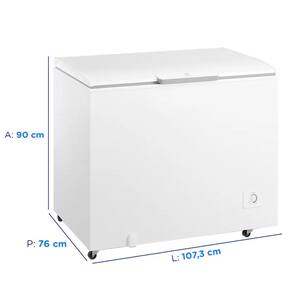 Características: Marca: Electrolux Modelo: HI330 Capacidade total: 320 litros Capacidade líquida: 314 litros Tipo de degelo: Cycle defrost Tipo de freezer: Horizontal Modos: Congelador e refrigerador Painel: Externo Quantidade de portas: 1 porta Controle de temperatura: Sim Dreno: Sim Pés com rodízios: Sim Eficiência energética: A++ Consumo: 390 kWh/mês Frequência: 60 Hz Inmetro: Sim Origem: Nacional