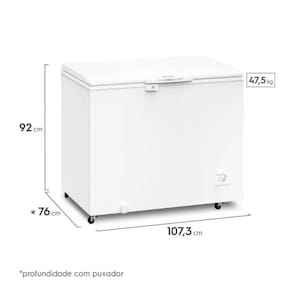 Com capacidade de 314 litros, o Freezer Horizontal Electrolux (HI330) é a opção ideal para quem precisa de bastante espaço para armazenar e organizar comidas e bebidas, seja em casa ou em um estabelecimento. A Tecnologia Inverter mantém a temperatura do freezer mais estável e proporciona uma economia de energia de até 20%, com eficiência energética A++. Por isso, o Freezer Horizontal Electrolux tem uma maior economia de energia. A Dupla Função permite que o freezer seja utilizado para congelar ou para refrigerar, e tenha uma temperatura flexível entre -23C e 3C. Já a função Turbo Freezer permite um resfriamento mais rápido, indicado para ocasiões em que há a necessidade de congelar os alimentos de forma acelerada. O painel frontal é intuitivo e facilita na hora de acionar todas as funções. O design do Freezer Horizontal Electrolux (HI330) é pensado para facilitar o dia a dia e traz maior praticidade no manuseio. As rodas 360 ajudam no posicionamento e na movimentação do freezer no seu espaço. A tampa e a alça ergonômica facilitam na hora de abrir e também ajudam na movimentação. Já o dreno frontal permite o escoamento da água do degelo sem a necessidade de tirar o freezer do lugar. 1 Economia do modelo HI330 em relação ao mínimo para a classificação A do Inmetro. NA | Cor: BRANCO | Voltagem: 220 V