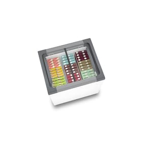 A capacidade líquida do freezer é de 144 litros. Ele pode armazenar até 90 potes de sorvete de 500ml ou 24 potes de sorvete de 2 litros.