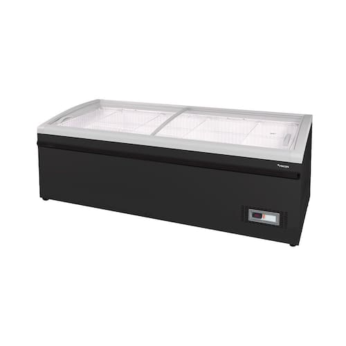 Com acabamento preto elegante, iluminação interna em LED e tampas de vidro deslizantes, ela valoriza seus produtos e atrai a atenção dos clientes, seja em supermercados, mercearias ou lojas de conveniência.