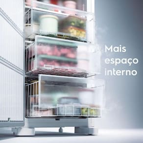E ainda com três grandes gavetas que ajudam a separar e visualizar alimentos e bebidas do seu freezer.