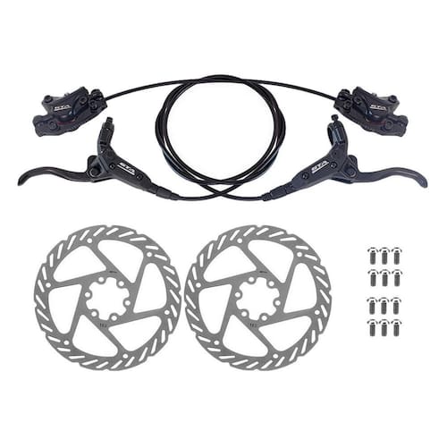 O jogo de freio a disco hidráulico implementa em sua bike um sistema de frenagem diferente do habitual. A precisão da frenagem é o diferencial deste produto em relação aos demais no mercado. A composição de todos os componentes em alumínio torna a bicicleta mais leve, resistente a ferrugem durante a lavagem e durante o percurso o peso da bike em conjunto com a velocidade não trazem grandes esforços aos freios, mantendo a durabilidade das pastilhas. A facilidade de manutenção permite tanto a limpeza dos discos, troca dos cabos e a remoção das pinças para a troca das pastilhas.