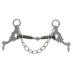 O Freio Bridão para Cavalos modelo Mangalarga da marca Vinagre é um equipamento de alta qualidade e eficiência, projetado especialmente para atender as necessidades dos cavalos da raça Mangalarga, conhecidos pela sua elegância, agilidade e sensibilidade. Este modelo é feito com materiais de alta qualidade, como o aço inoxidável, ferro e cobre, o que garante a resistência e a durabilidade do equipamento. O freio bridão Mangalarga apresenta duas argolas, uma para as rédeas e outra para a corrente que fica abaixo da mandíbula do cavalo, proporcionando um controle mais preciso sobre a cabeça e a boca do animal. O modelo é ideal para cavalos que precisam de um freio mais suave e sutil, como os da raça Mangalarga, que têm uma sensibilidade maior na boca.